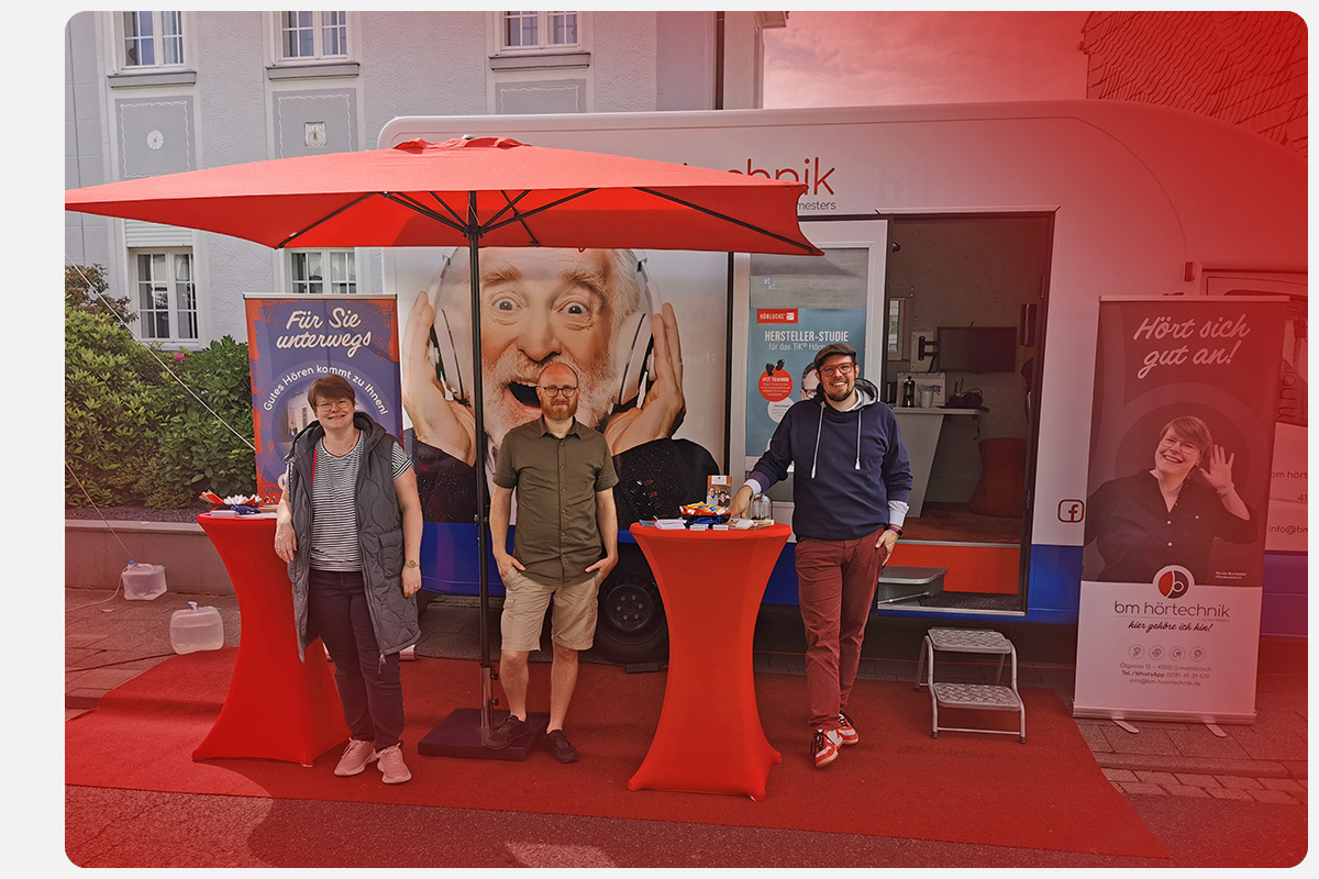 Kennen Sie schon unser Ohrmobil? Wir bringen den kompletten Service unseres Fachgeschäfts direkt zu Ihnen – ob zu Hause, auf Events oder Messen. Mit modernster Ausstattung und dem gewohnten Service stehen wir Ihnen überall zur Seite: von persönlicher Beratung, über Hörmessungen bis hin zu Reparaturen.
